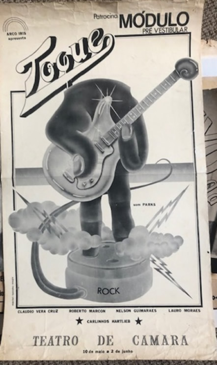 Arquivos de Juarez Fonseca: Cartazes de shows, Banda “Toque”, que fez temporada de 10 de maio a 2 de junho (!!!) de 1974 no Teatro de Câmara, foi o primeiro show individual bem montado e pop de Carlinhos Hartlieb.