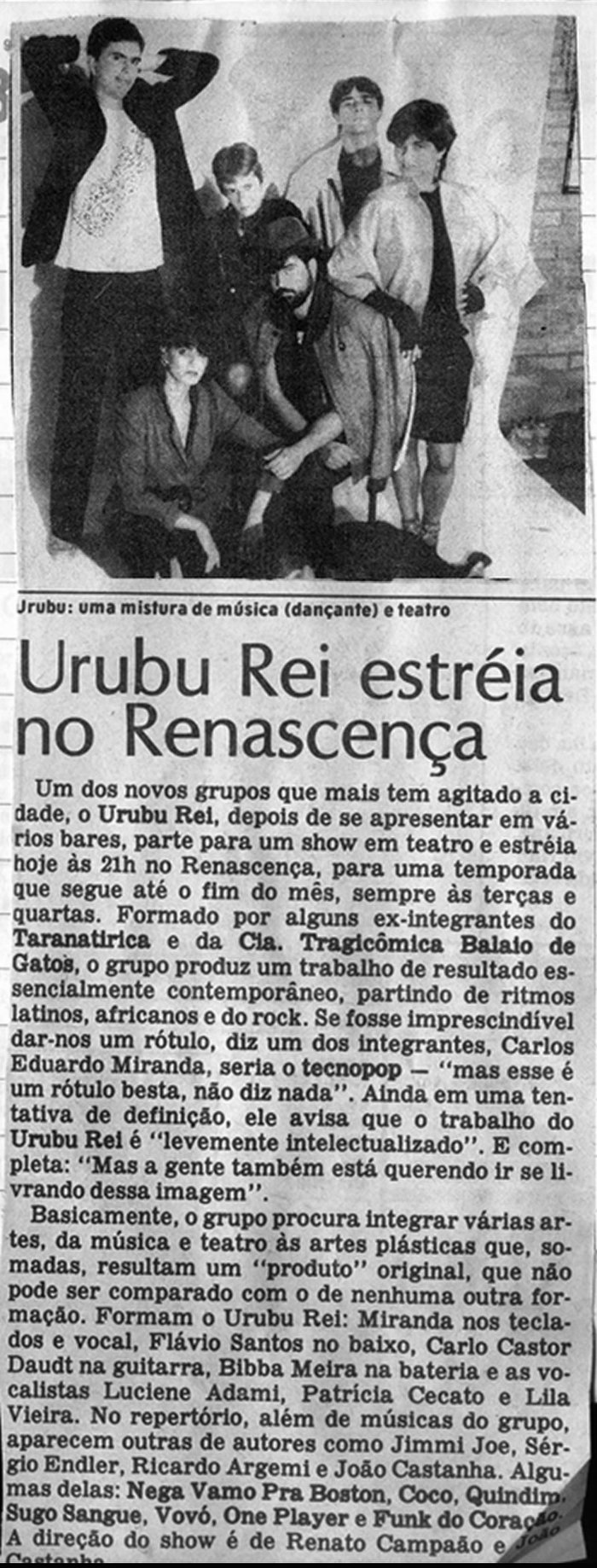 Um dos novos grupos que mais tem agitado a cidade, o Urubu Rei, depois de se apresentar em vários bares, parte para um show em teatro e estreia hoje às 21h no Renascença, para uma temporada que segue até o fim do mês, sempre às terças e quartas.