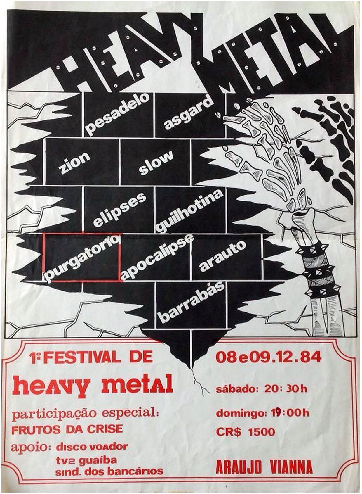 Pôster do 1º FESTIVAL DE HEAVY METAL, na cidade de Porto Alegre, no Araújo Vianna, em dois dias: 8 e 9 de dezembro de 1984.