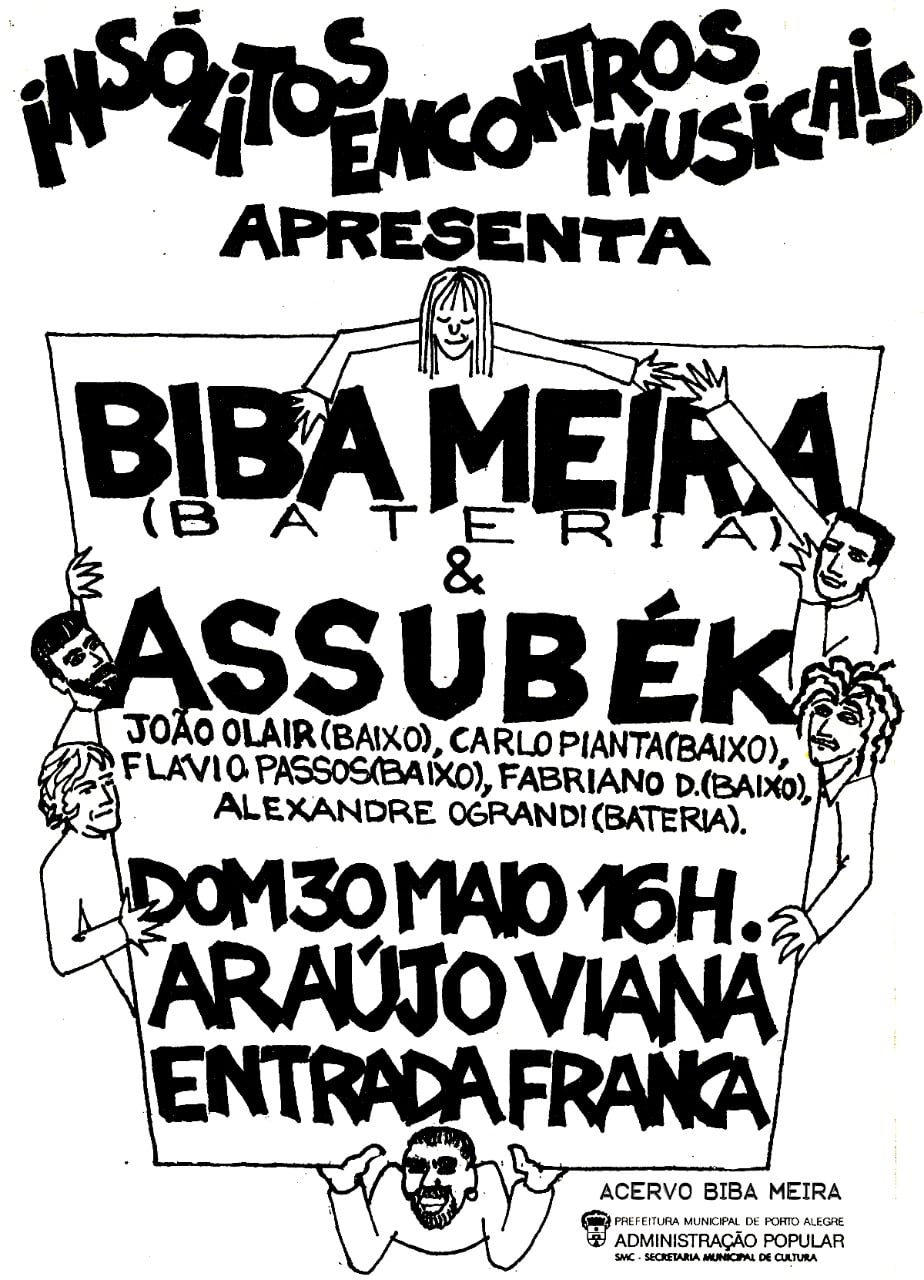 Biba Meira e a banda Assubék que reunia baixistas (Carlo Pianta, João Olair, Flavio Passos, Fabriano Rocha e o baterista Alexandre Ograndi), sem guitarrista(s). Aconteceu no Araújo Vianna (Porto Alegre-RS) no dia 30 de maio de 1993.